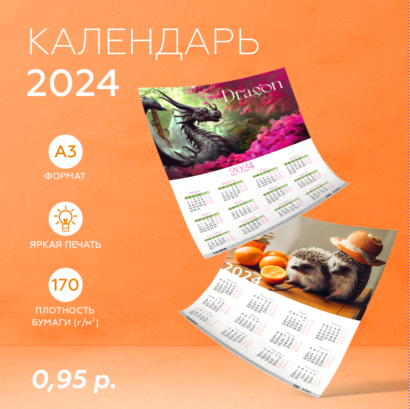В нашем магазине Вы можете приобрести календарь плакат А3 на 2024г. в ассортименте (3 вида).